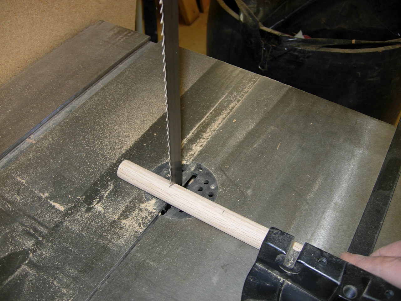 My last pieces to construct for this project are the spindles. First I sanded down the spindle bodies that I made last night. Then I made up a jig to allow me to bore a 3/4″ diameter hole in the center of each end. I clamped the jig in place and put my 3/4″ forstner bit into my drill. The forstner bit does a nice job cutting a smooth hole. Unfortunately they don’t drill through nails as well as I would have liked. With my good bit now dull, I moved to my only other 3/4″ bit, my speed bit. It worked well, but white oak is tough stuff, I burned the bit black. I guess I will be replacing two bits… I started turning down 3/4″ dowels a few weeks back on my lathe. After an hour and just a few successful dowels created, I just bought a 36″ dowel for $3 and said “the heck with it”. I cut the dowels down to 2″ long segments on my bandsaw. The blade is a lot thinner then my other saws and it was safer to cut small pieces on. I sanded down the edges of the dowels then put a ring of glue in the holes. Giving the dowels at least one full twist, I pressed them in place. Since I still don’t have a bunch of 4′ long clamps, I resorted to brad nails to hold them while they dry. I dropped the spindles into the rests in the drawers and they worked perfectly. In case you were wondering why I went through all the trouble to create these spindles the way I did, I will explain. If you lay the altar cloth out flat on a table or the floor, you can slide one end into the slot that runs through the center of the spindle. Now you can roll it up evenly without struggling to hold the cloth in place until you can get the roll started. This makes life a little easier for the roller, and hopefully cuts down on wrinkles. Tomorrow I believe it will be time to start staining.