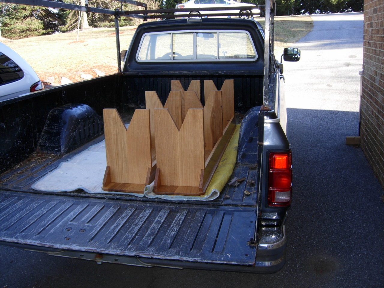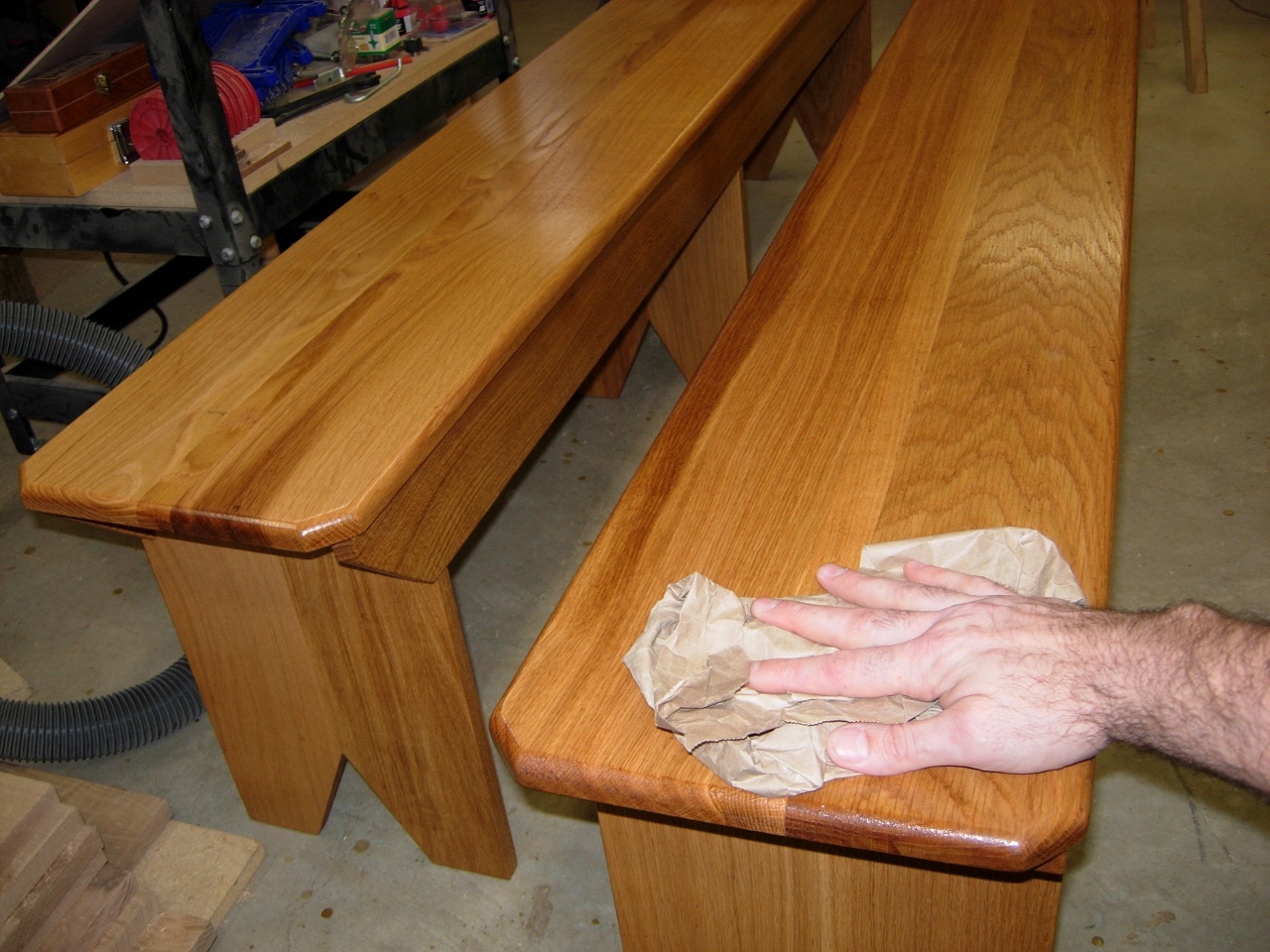 Just a quick post today. The benches have been sitting in my shop for a couple of days, to let the finish cure a bit. I gave them a final buff last night with a brown paper bag. Today they got loaded on the truck and hauled down the road for delivery. Oh, and in case you were wondering how the epoxied knot hole turned out, here is a picture.