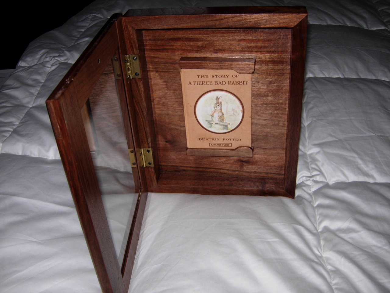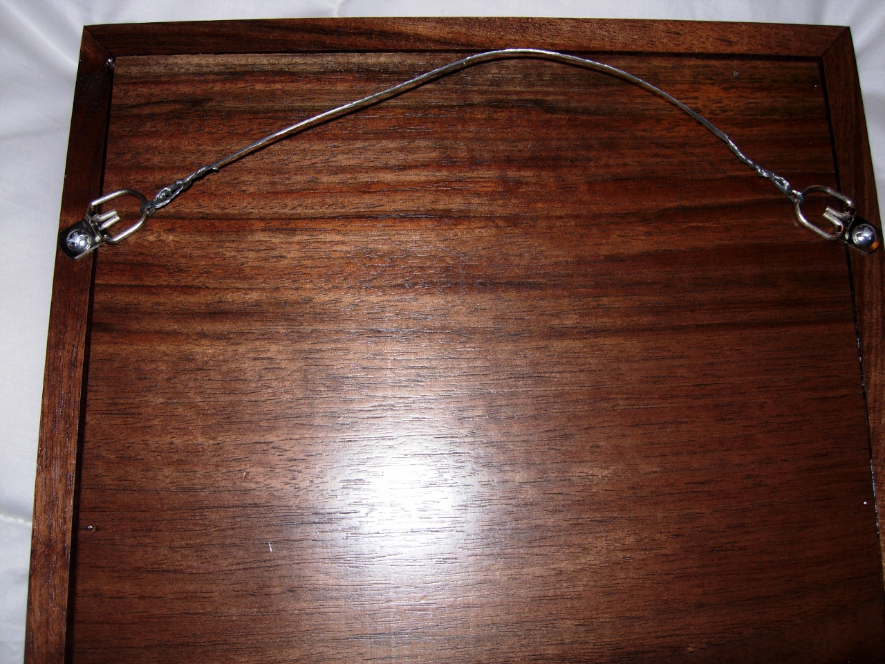 There is a bit of tension on the hinge, but if the new owner has a problem with the door coming open, I will epoxy a small magnet on the right side of the box and match it to a screw on the back side of the frame.