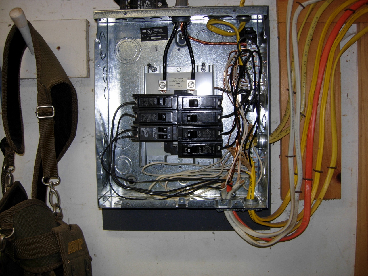 I pulled the face off the panel and started moving breakers around. I needed two spaces that were next to each other, so I shifted a couple out of the way. Only one clock needed to be reset, I think. I also decided to add a second 120V line while I was at it.