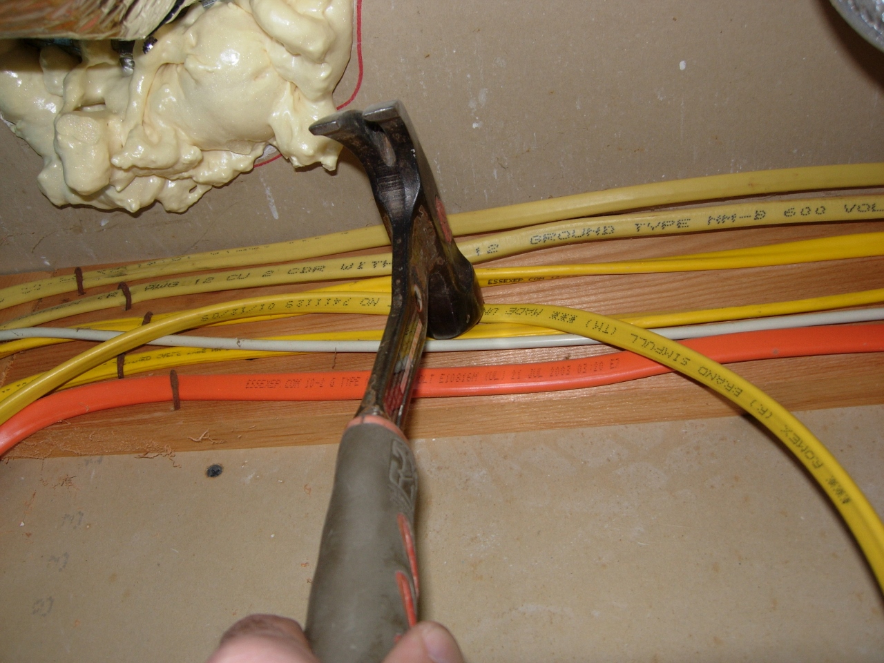I fished the wire back along and through the wall to my shop. When I got to the junction box that used to tie this circuit to the table saw, band saw, lathe, planer, and dust collector, I separated it to two separate circuits. One is now dedicated to the table saw. The other circuit will be for the rest.