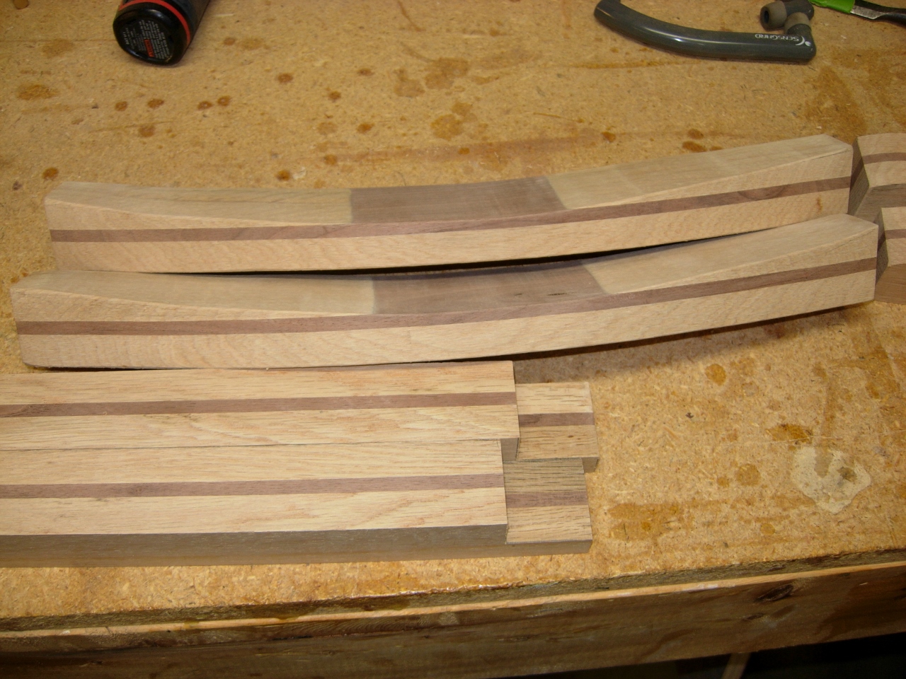I finished cutting out all of the pieces I need for the rear legs and the stretchers. The wider bandsaw blade actually worked much better than the 1/4″ blade did. Being much stiffer, it didn’t belly out when I cut the curves in the front stretchers like the 1/4″ blade did when I cut the seat. That is enough for one evening. It’s nearly midnight, time for bed.