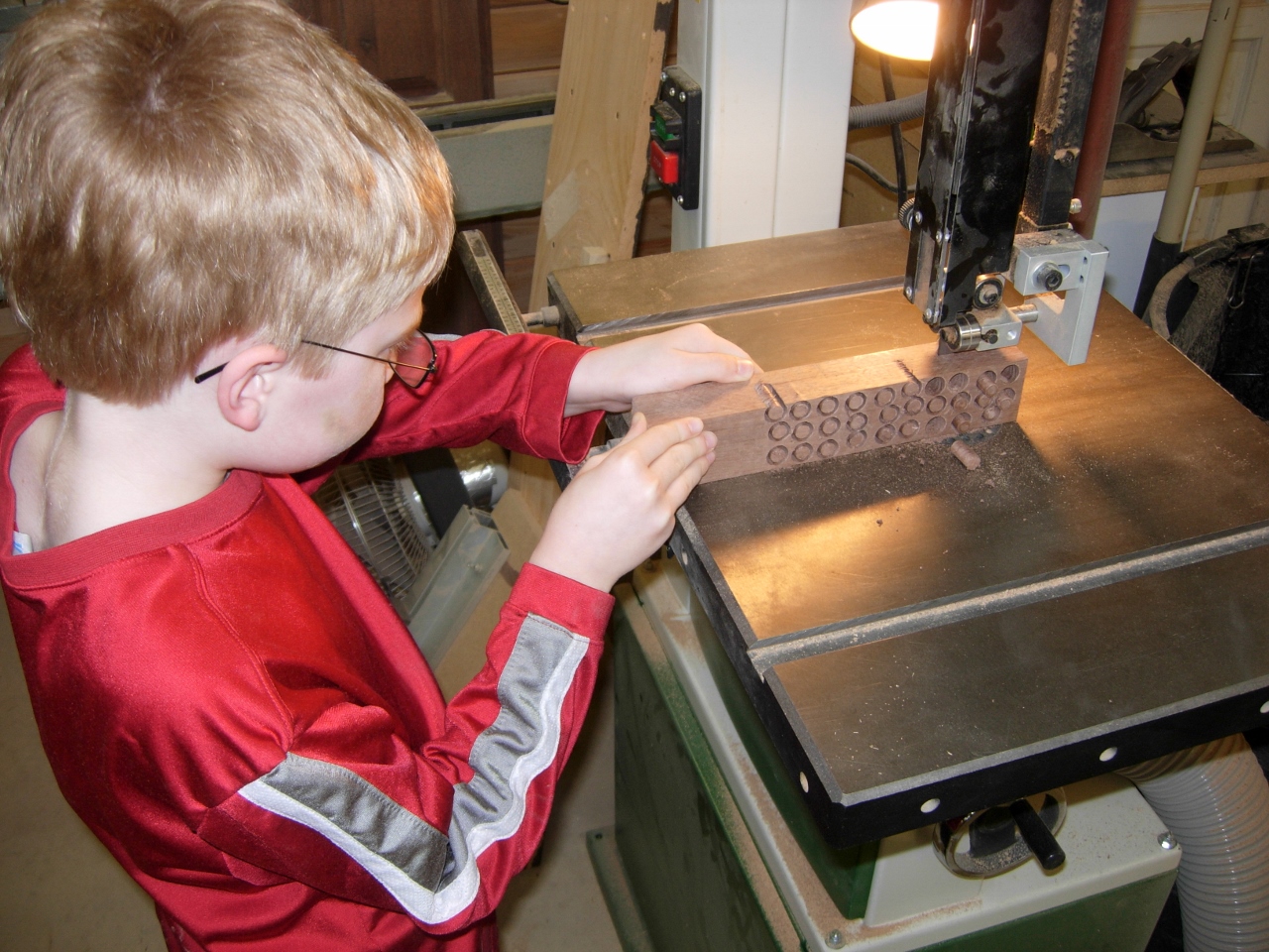 The front legs are straight so I cut them down on the chop saw. The back legs are at an angle, they got cut down on the bandsaw.
