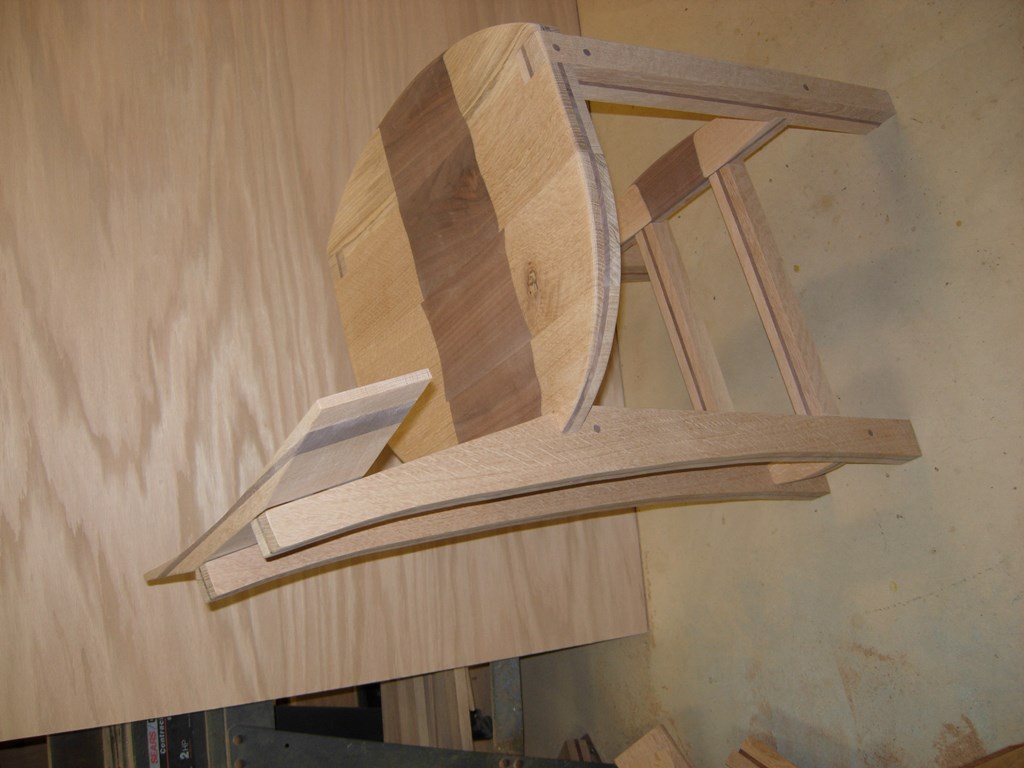 I had some extra time this evening, so I started the assembly of the last chair. I won’t bore you with the details, you can scan back through the last month of posts if you want to see how to do it all again… The assembly went more smoothly on this last one. I knew where the problem areas would be and tweaked a few things that I had done on the last two. Tonight I hope to have the time to finish setting the screws and plugs so I can have them all finished by the end of the week.