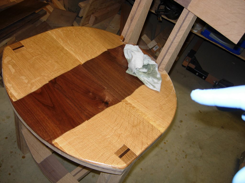 I finished up the assembly of the second pub chair of this set last night. I decided to go ahead and apply the first coat of tung oil. I should be able to apply a second coat this evening and finish them up this weekend.