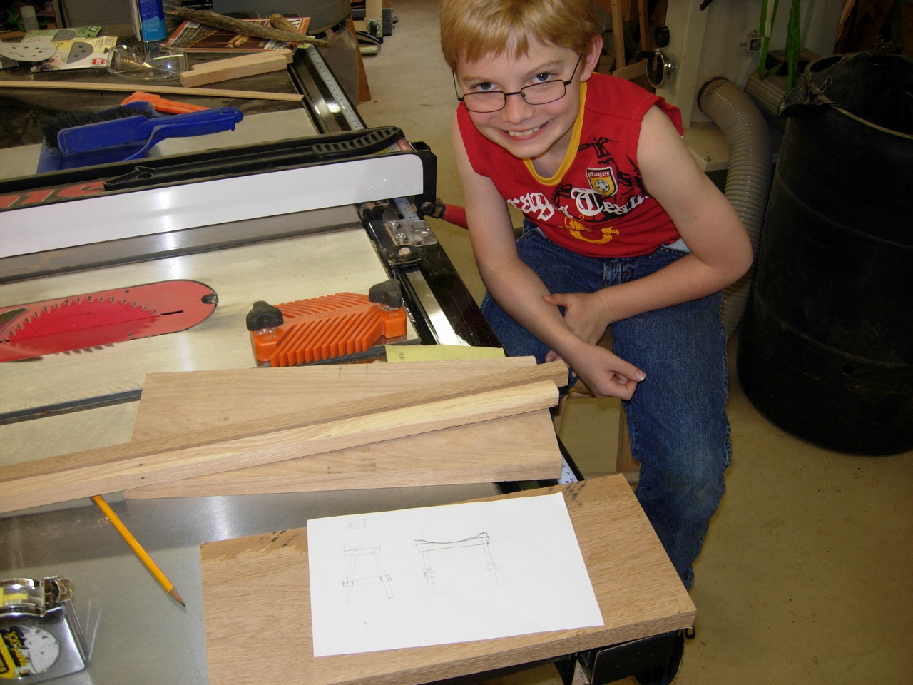 We made a quick project today. Adam wanted a stool to use in the shop at his work bench. We started out by coming up with a master plan that would utilize my growing pile of scrap.