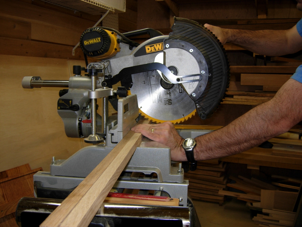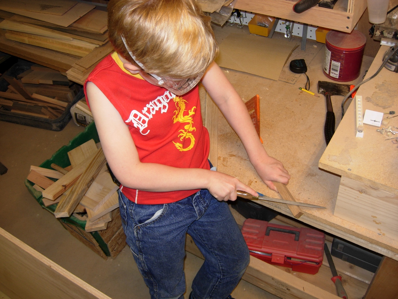 After the holes were drilled, we determined the best height for Adam (about 21″) and cut the legs to that length.