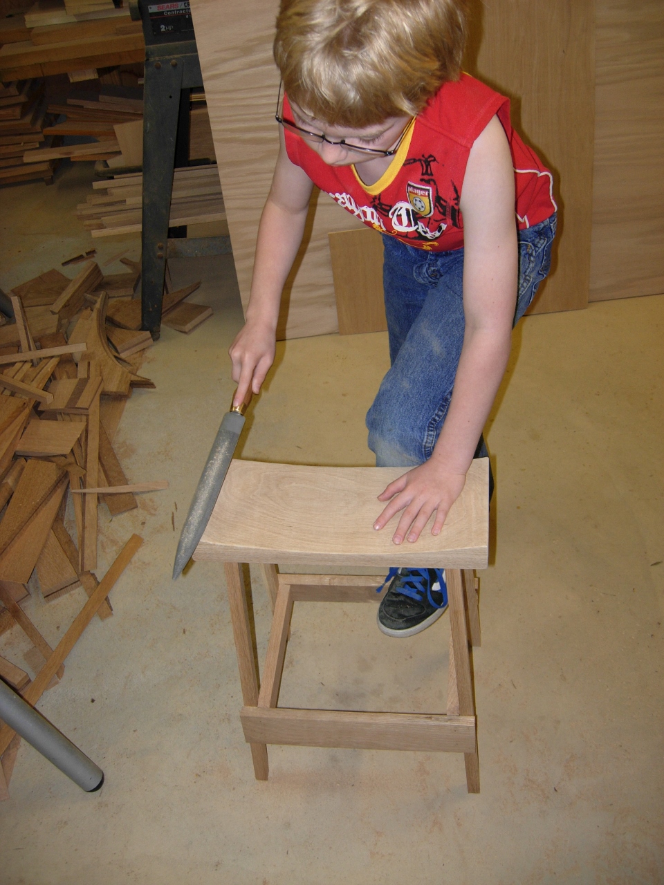 After Adam load tested the stool, I handed him my new Auriou rasp to round over the edges.