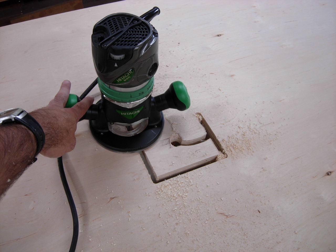 I drilled a 7/8″ hole in the center of the relic chamber through the top piece. I flipped the top right-side-up and used the flush trim bit to open up the entire hole.