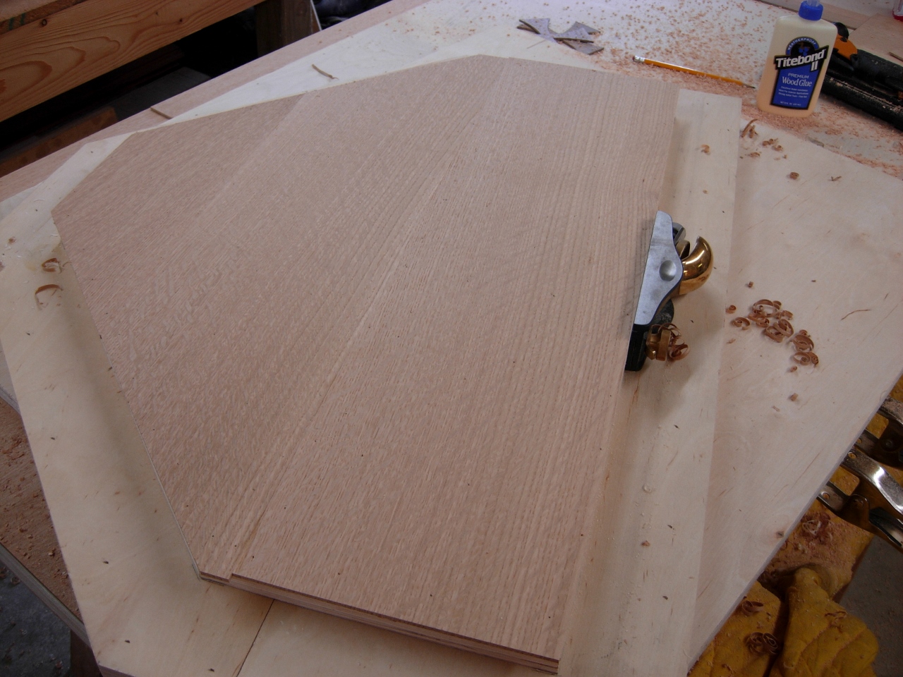 To trim with the grain, I used the block plane. With that out of the way, I started laying out the veneer for the bottom lip.