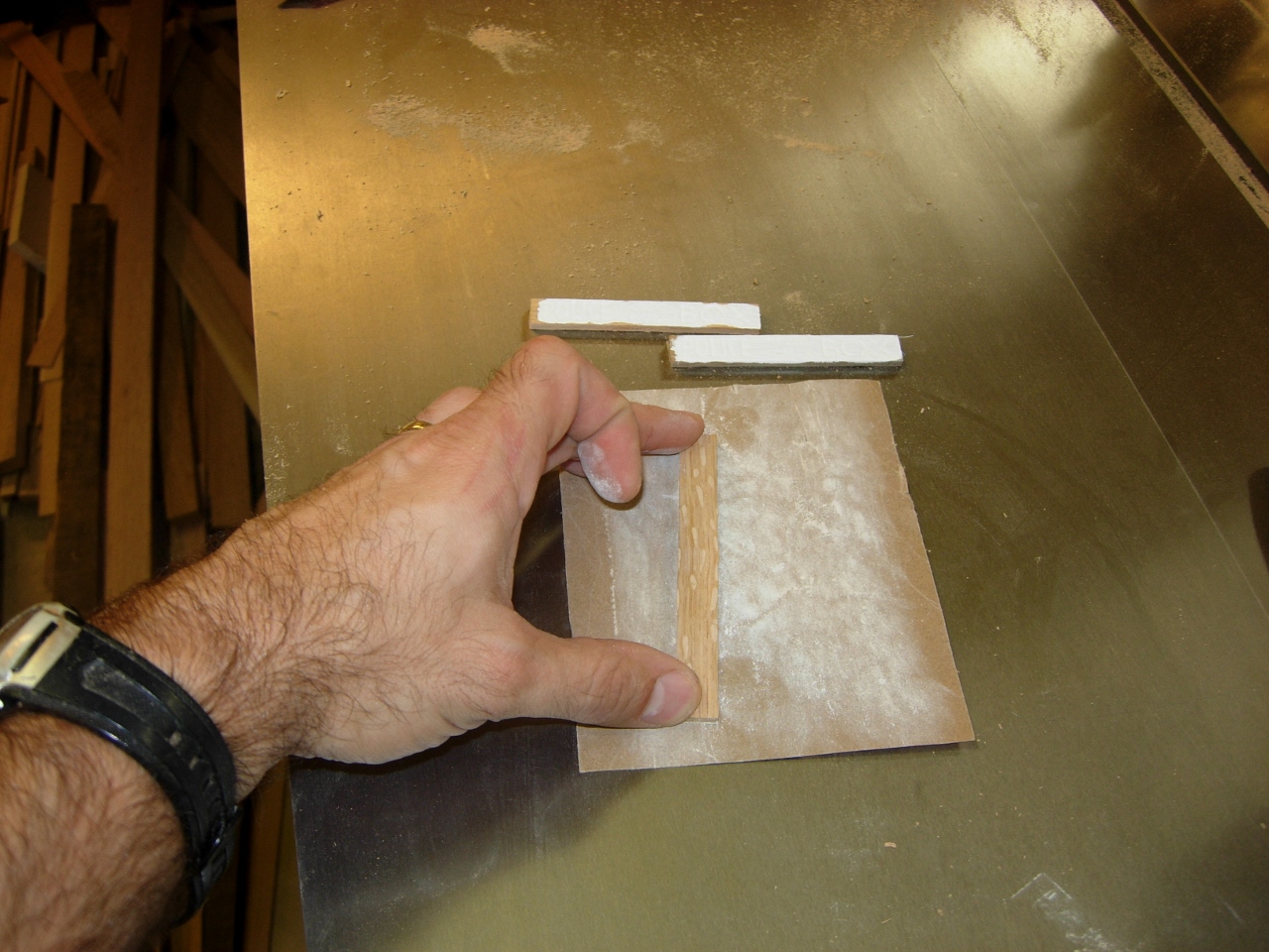 My first inclination is always to try to do the easiest options first, so I thought to use a piece of Walnut veneer that was laying in the scrap heap. I double-sided taped it to a larger board. This way I could cut through the veneer without losing the part or cutting the traction belt. Of course the veneer varied slightly in thickness so half of the shallow cuts didn’t actually ever reach wood. So after wasting a half hour trying to save five minutes, I just planed down a piece of oak to the correct size and used that instead.