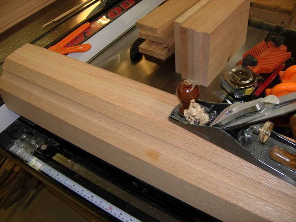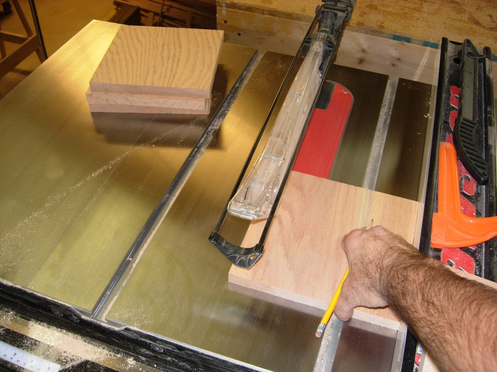 They need to be 8.5″ square, and the widest boards I have are 6.5″, so I am glueing an extra 2″ or so to each one. I am quickly running out of room and clamps with this project. I just piled all of the caps in a heap on my bench so I still had room to glue up columns.