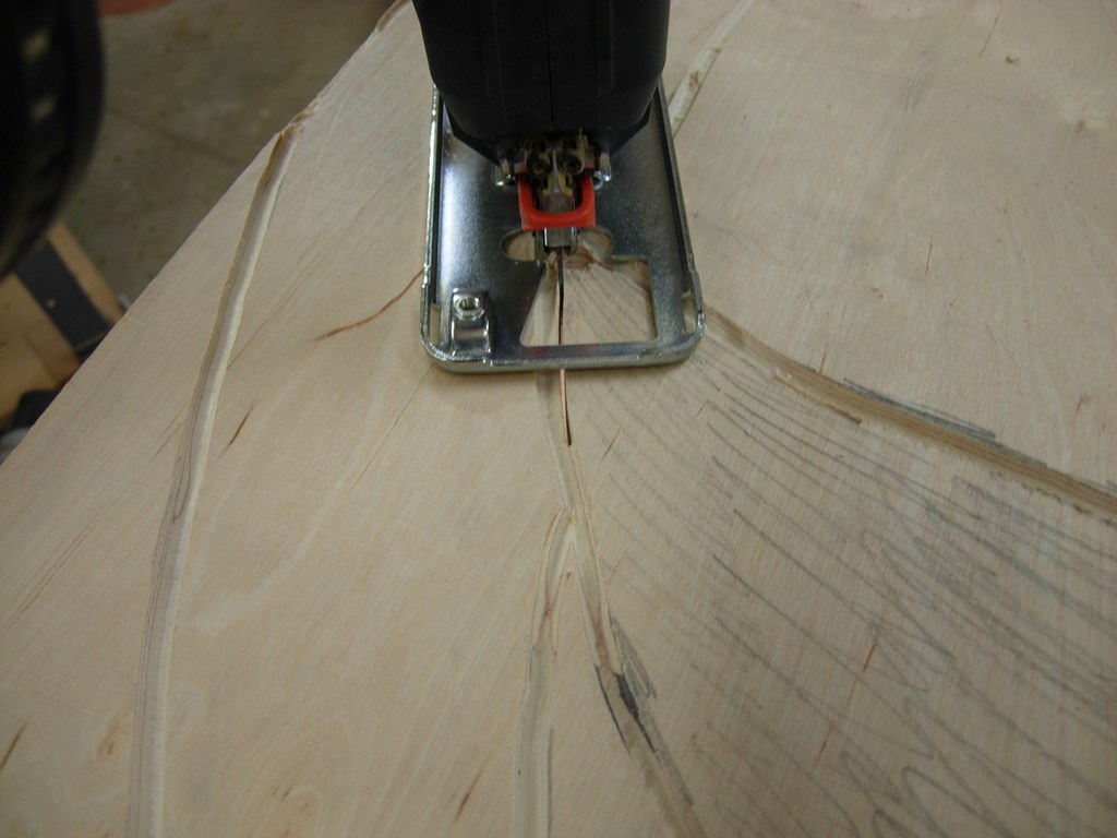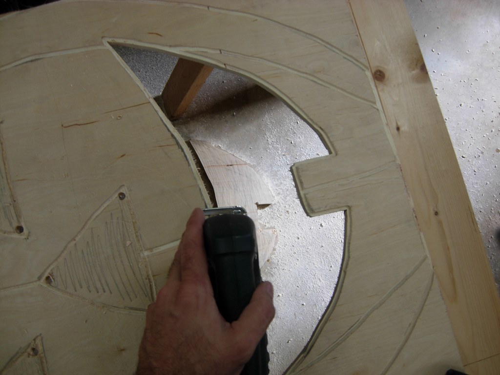To cut out the openings for the mouth, I drilled a hole at each corner, then used a jig saw to cut out the openings.