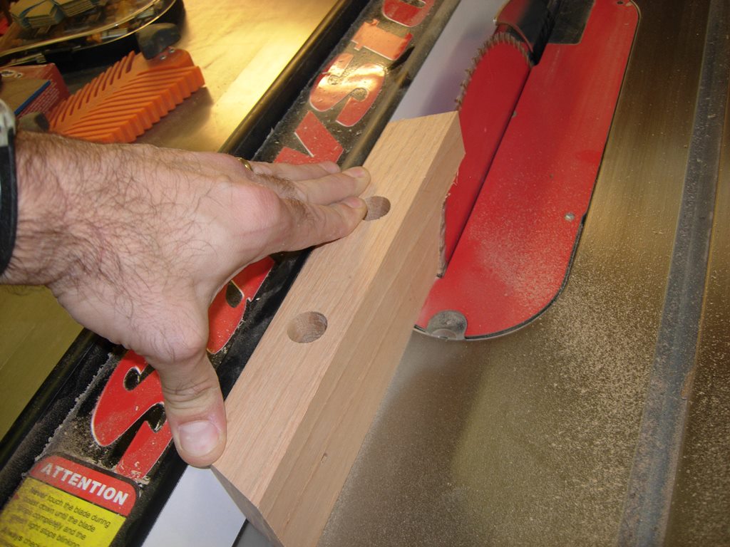 After I located where I wanted the legs, I drilled two 3/4″ holes in the back.