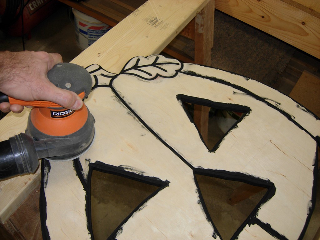 When the black paint dried, I sanded down the over-painted areas with the orbital finish sander.