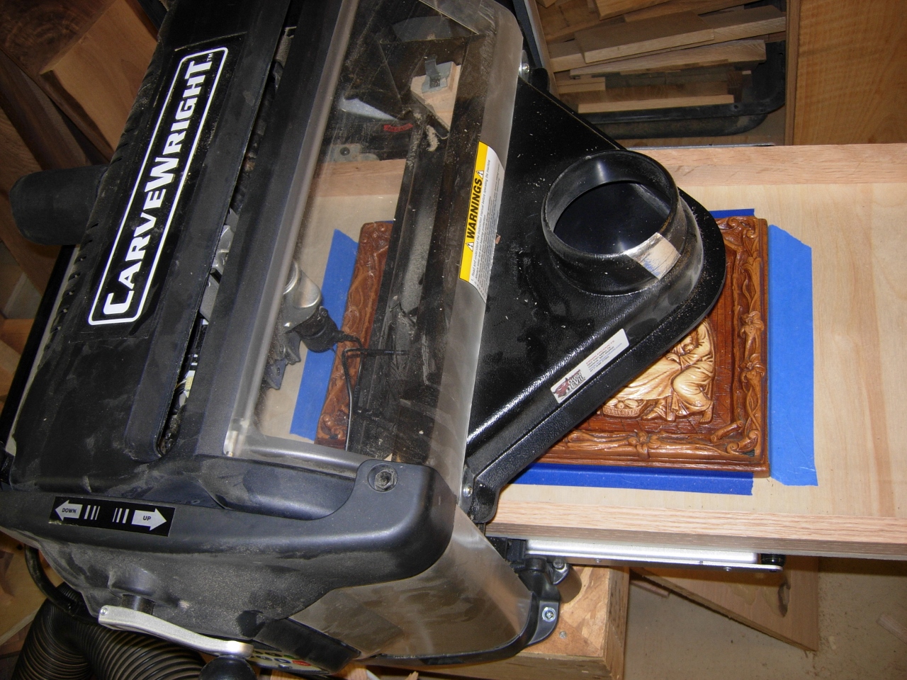 I have another big project coming up, so I have a couple little projects that I need to get out of the way first. I need to do a few carvings for the church, on the Carvewright, so I have been trying to find existing 3D files to save me the trouble of creating them. Not having a lot of luck there, so I borrowed a carved relief of the last supper from my in-laws and I thought I would try using the scanning probe. Upon reading the directions, I discovered that I needed to create a scanning sled so the project could be clamped down while the scanning proceeded. I could make a sled with all sorts of clamping and fastening options, but I don’t need any of that at the moment, so that will be a project for another day…