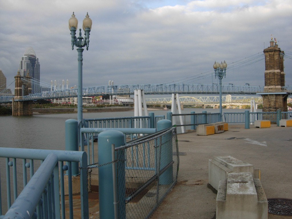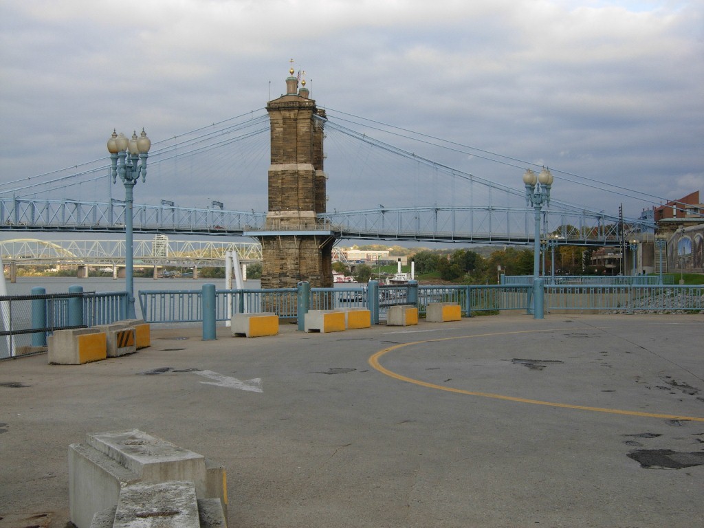 I got here in Cincinnati a day early for the conference. That gave me a chance to see a few sites. Along the river you can see a lot of bridges and stadiums, even a mural or two.