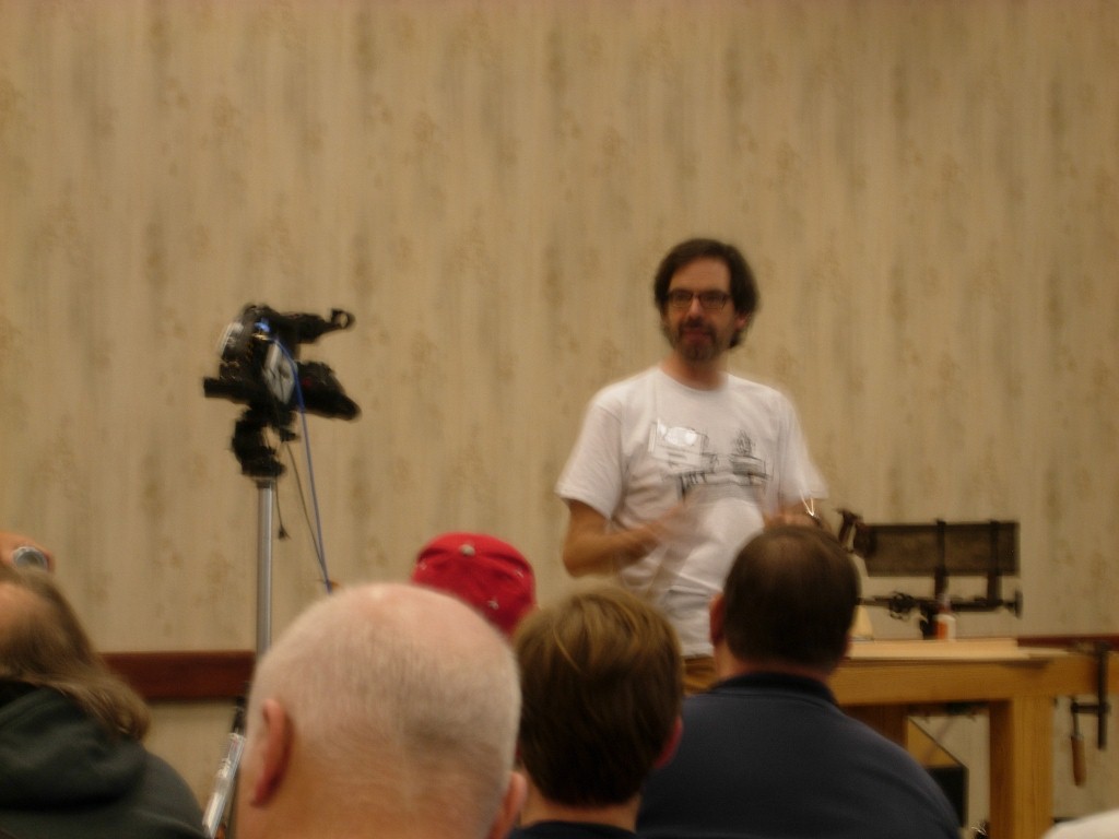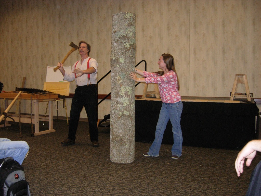 I started the day watching Roy Underhill put on a bit of a show. He somehow manages to turn a tree into a square beam while making you laugh the whole time. I was in the fourth row back and still managed to get hit by wood flying wood chips.