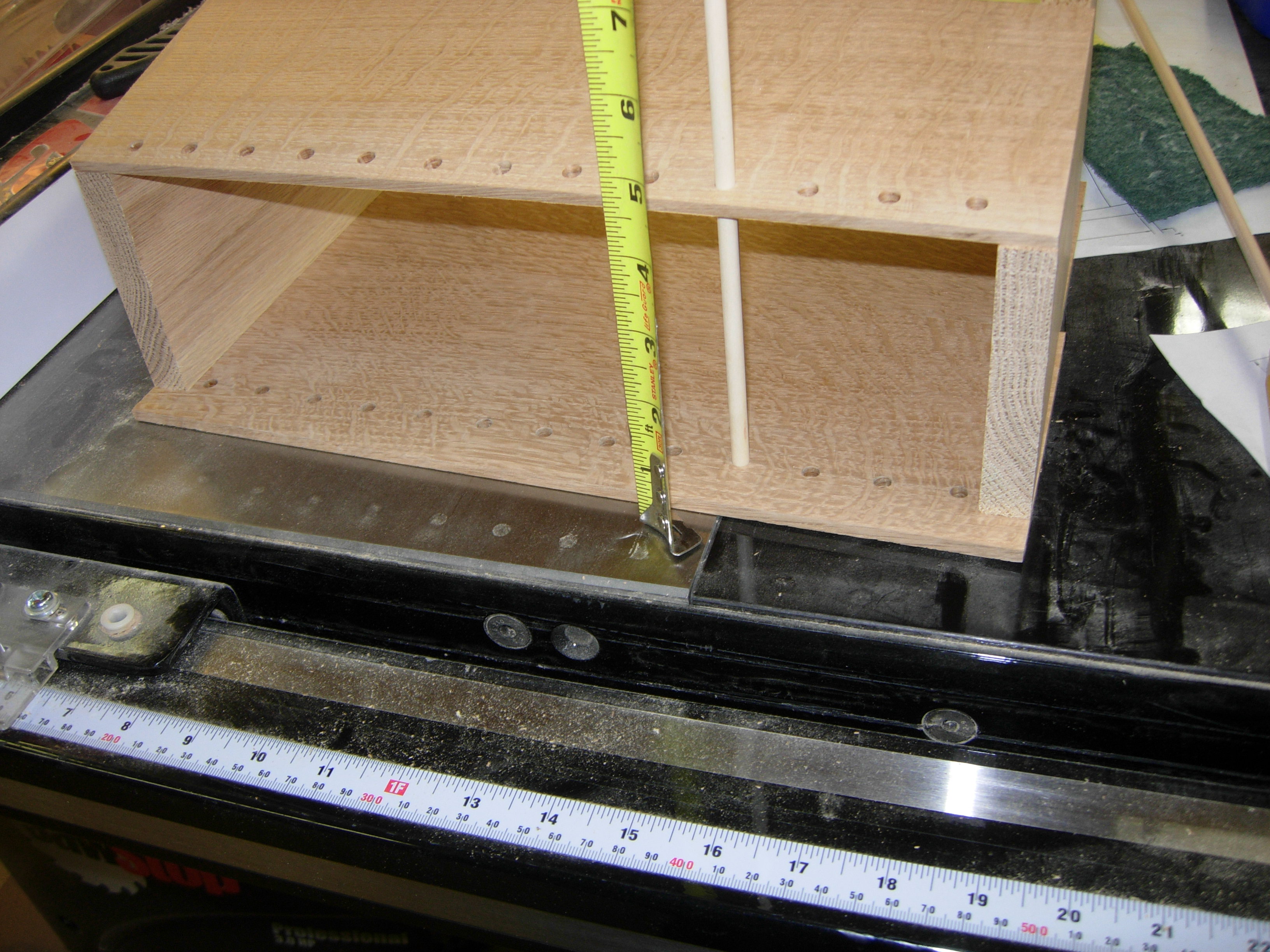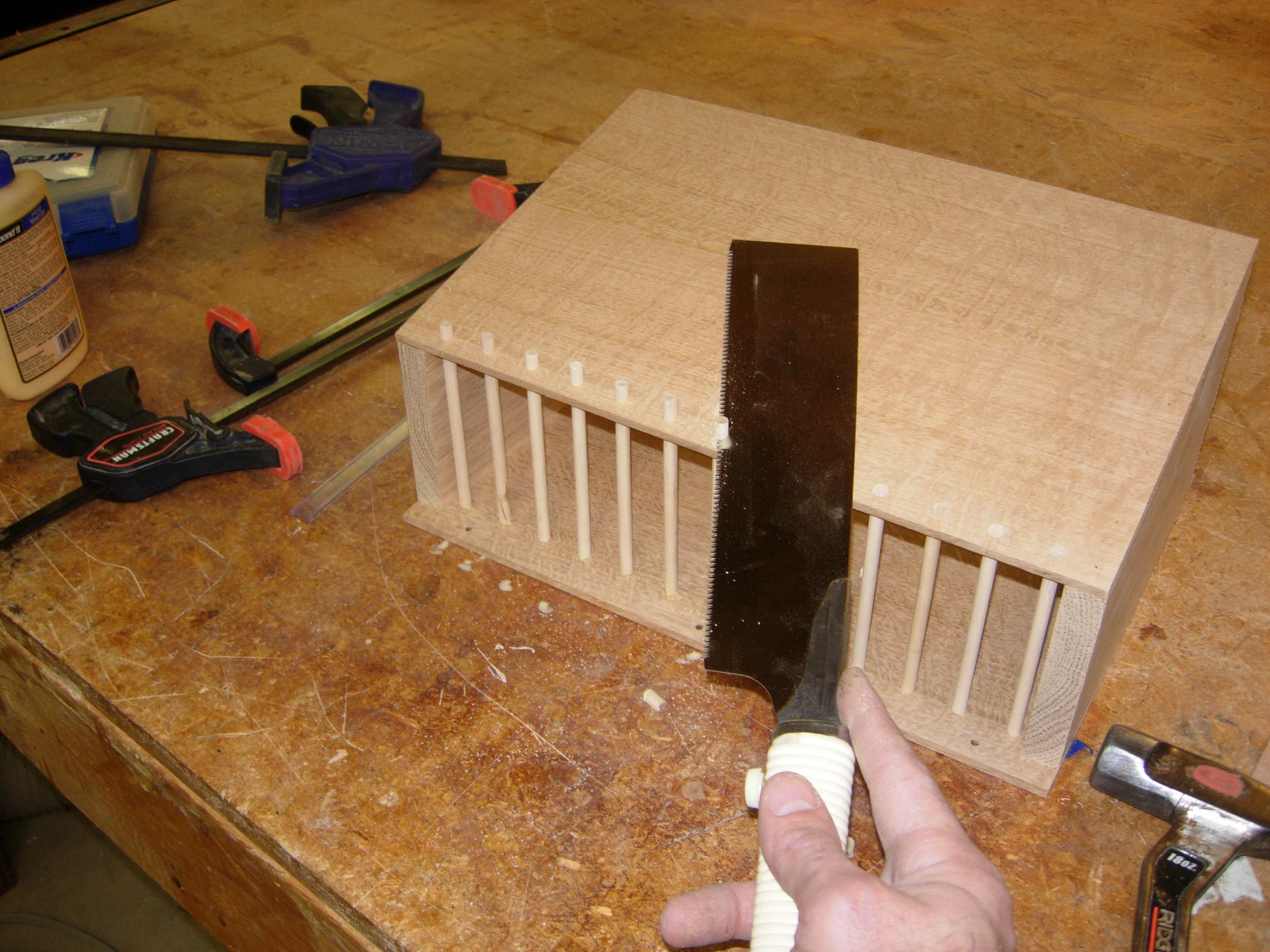 The next step was to get an estimate of the length of dowel, that I would need. I then cut 13 dowels about 3/8″ over-sized.