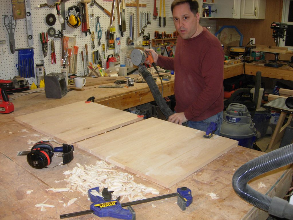 Instead, I took down a majority of the high spots with a card scraper while Rob got to play with the orbital sander.