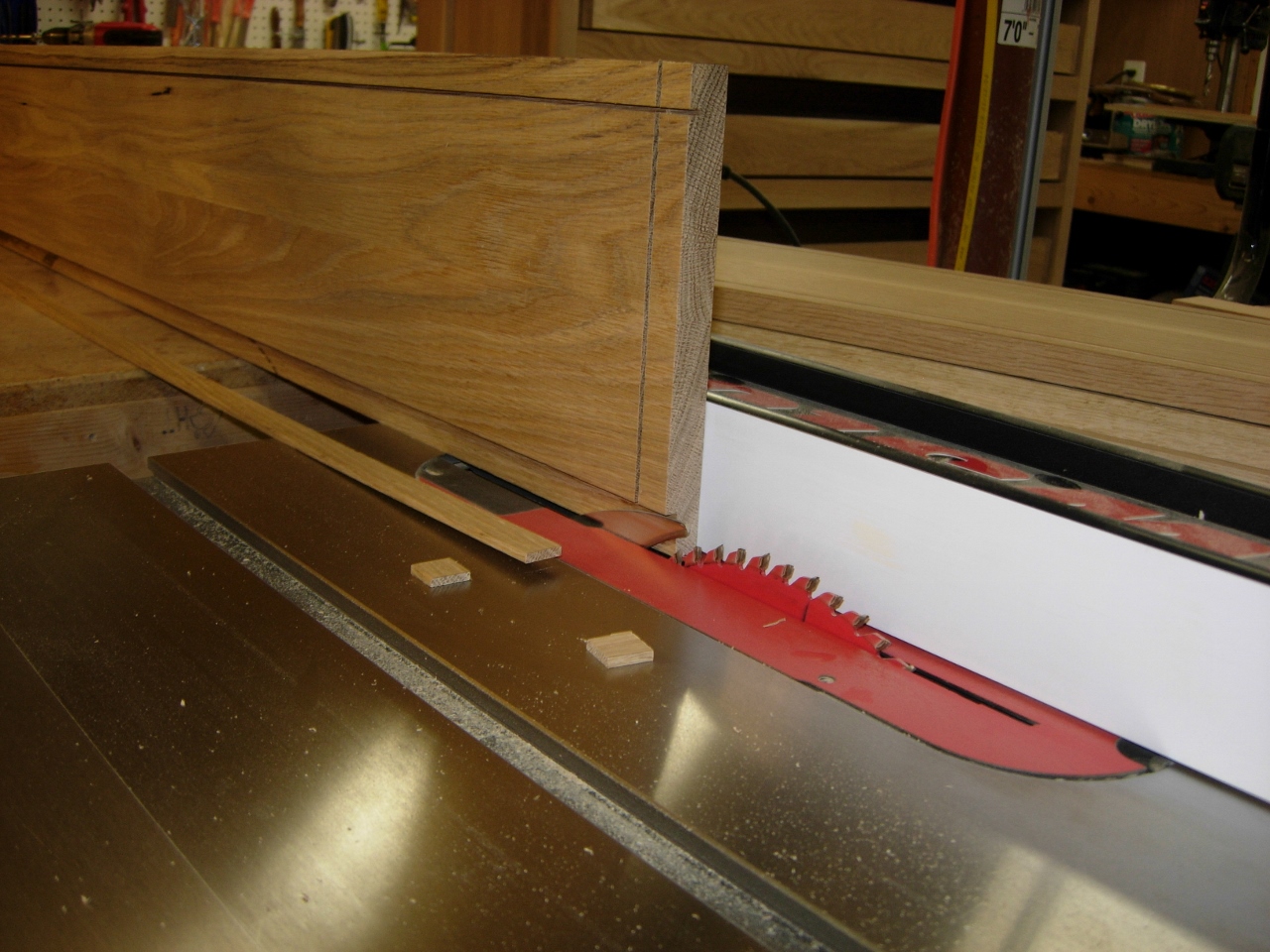 Since the drawers that I am matching, only have 1/2″ thick faces, I need to notch back the outer 3/4″ a 1/4″ so that the edges of my drawer faces are only 1/2″ thick, but the rest will stay 3/4″ and be recessed into the opening. I cut the notch, on my long sides, out on the table saw. My ceiling is too low to stand the faces on end to cut the rest, so the ends were notched on the router table.
