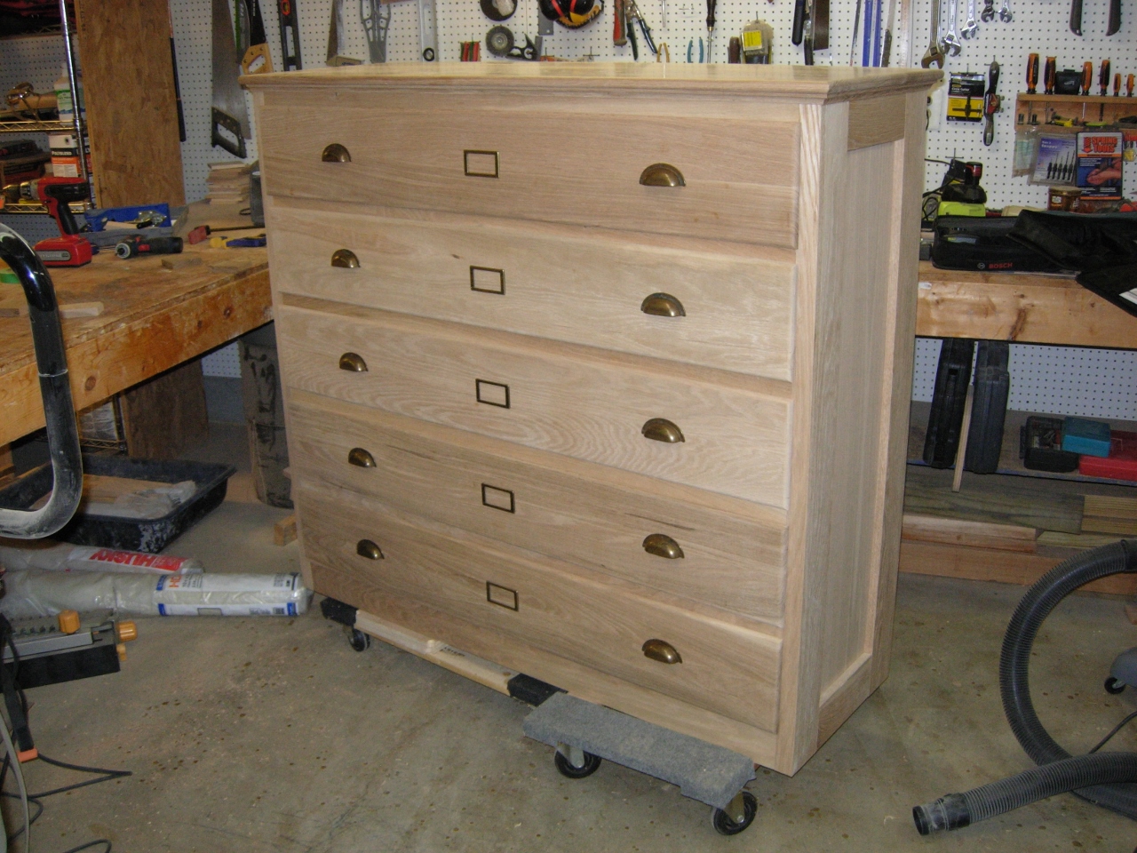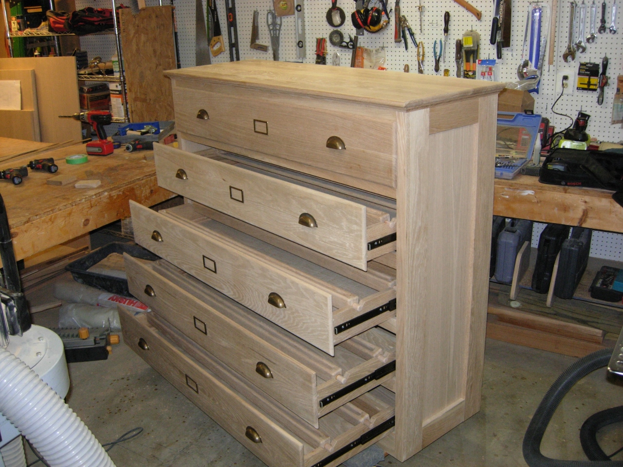 It seemed to take a while to do the first drawer, because I had to keep switching bits. I had to use three different drill bits and two screw bits (Phillips and square). It occurred to me that I had asked my wife to augment my 12v Bosch screw gun collection this past Christmas. I believe that I now have one of each type… I bought my 20v Craftsman when I was building one of my house additions and it works great, but the 12v ones are the perfect size for the shop. Why so many? Well, they have different uses. I had the magnetic quick-disconnect hex headed one, and I wanted the impact driver and the one with the adjustable chuck. The kit I got for Christmas had the impact and another quick disconnect. It was supposed to have the adjustable one, but they were out, so my wife got a similar kit instead. I picked up the adjustable one on sale at a tool show after Christmas. Due to buying several kits, I now have six batteries and three chargers as well. They will be very useful when I go on my mission trip with the youth group in July. But for now, they also cut drawer assembly time completely in half. I finished the last four drawers in about an hour.