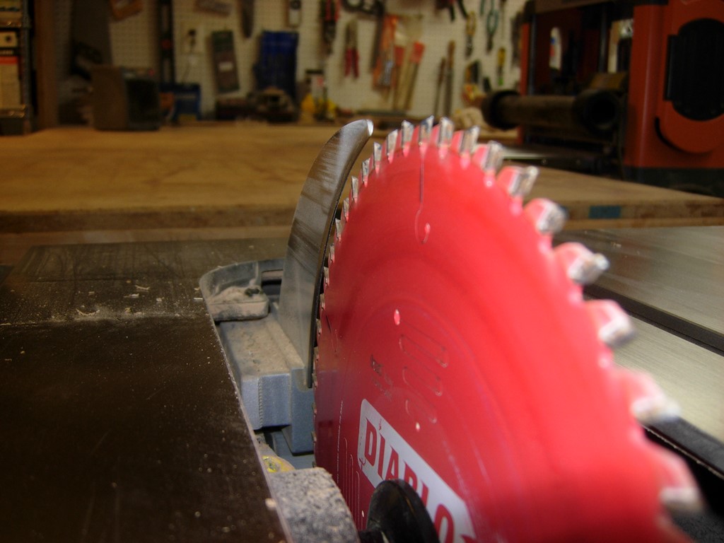 I removed my $25 Freud Diablo blade, that works great for most of my work, and installed the new $135 Forrest Woodworker II blade. I hope it will be worth the expense. I do know that it is sharp. I managed to slice a finger, just installing it…