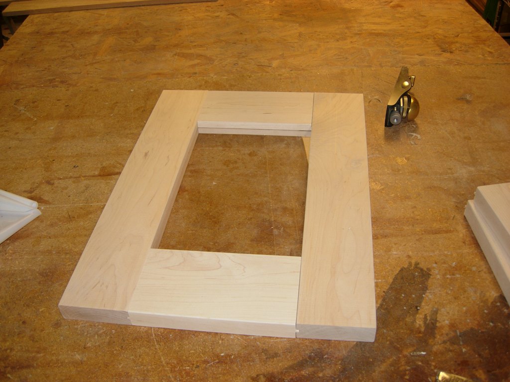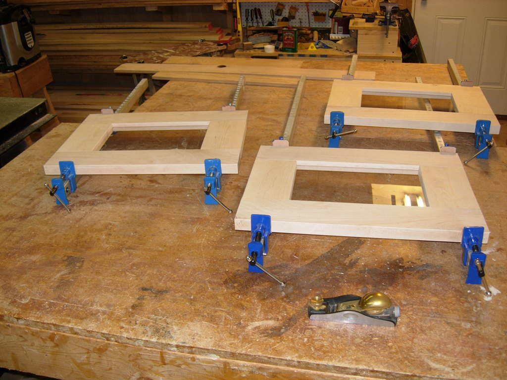 I applied glue to the ends of the top and bottom frame pieces and clamped them up.