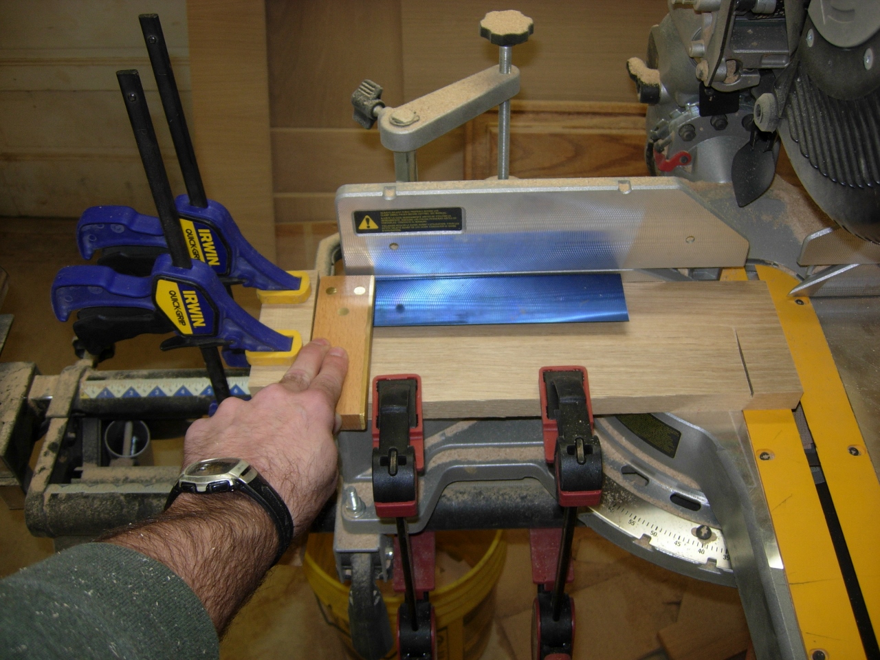 The lengths were rough, so I built an extended stop on my miter saw.