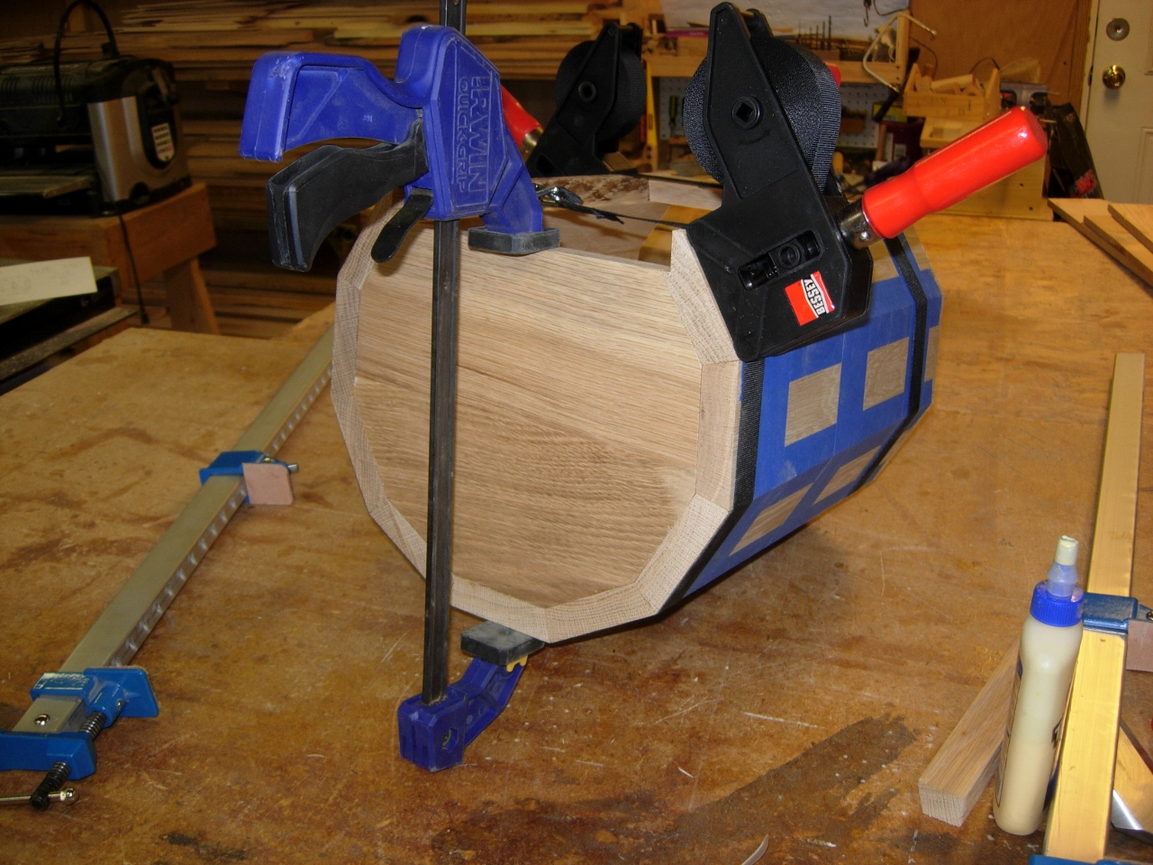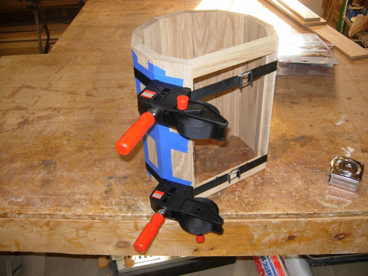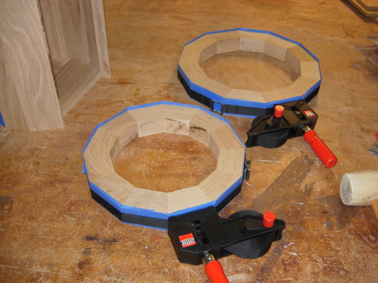 Following the same routine as the column, I taped, glued, and strapped the first segment together.