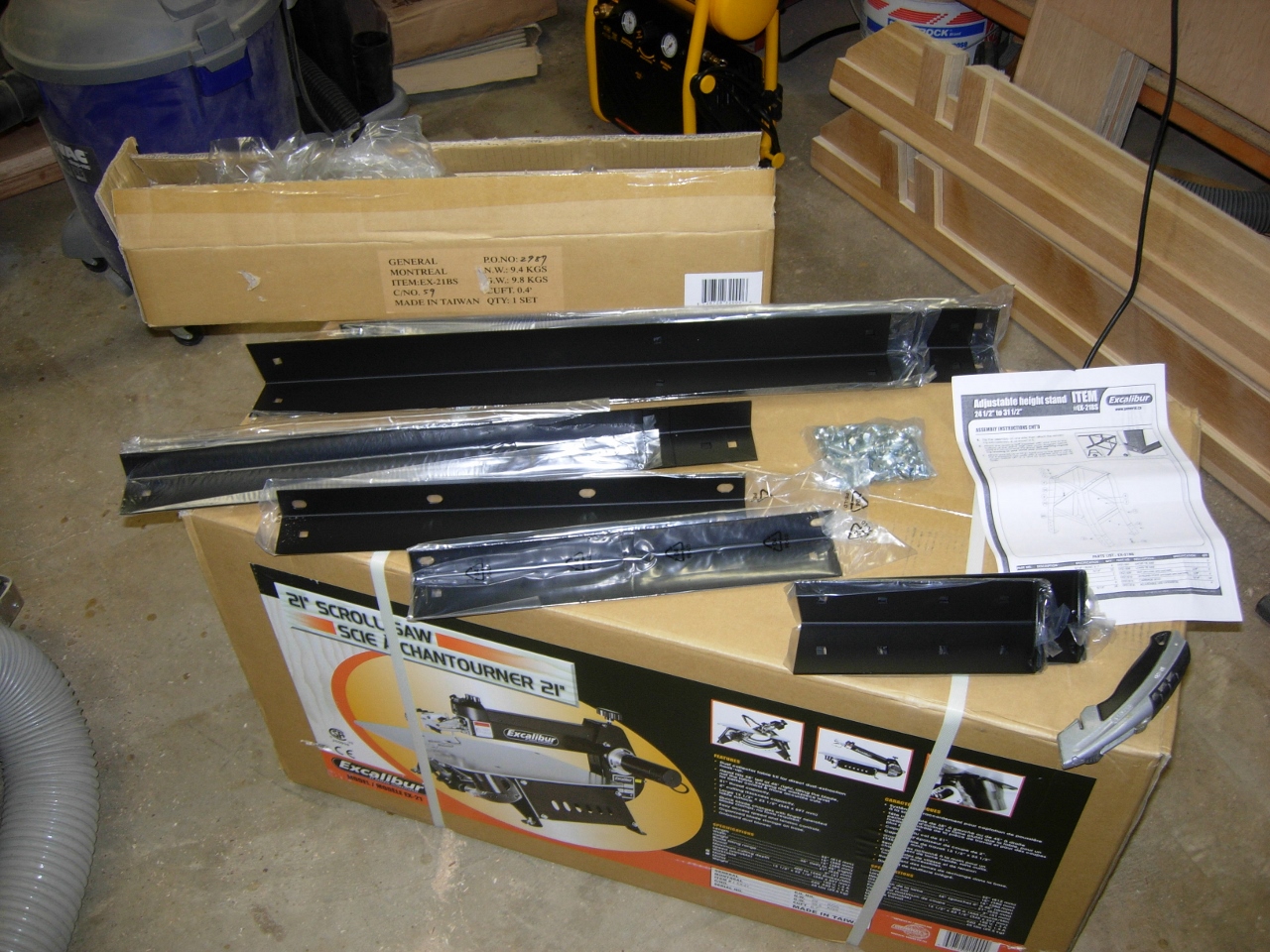 My other new arrival today is the Excalibur 21″ scroll saw from General International. I ordered it at Woodcraft the other day, and my buddy Jim picked it up today in Leesburg, VA on his way to meet me for lunch. Thanks again Jim for saving me over two hours of driving.