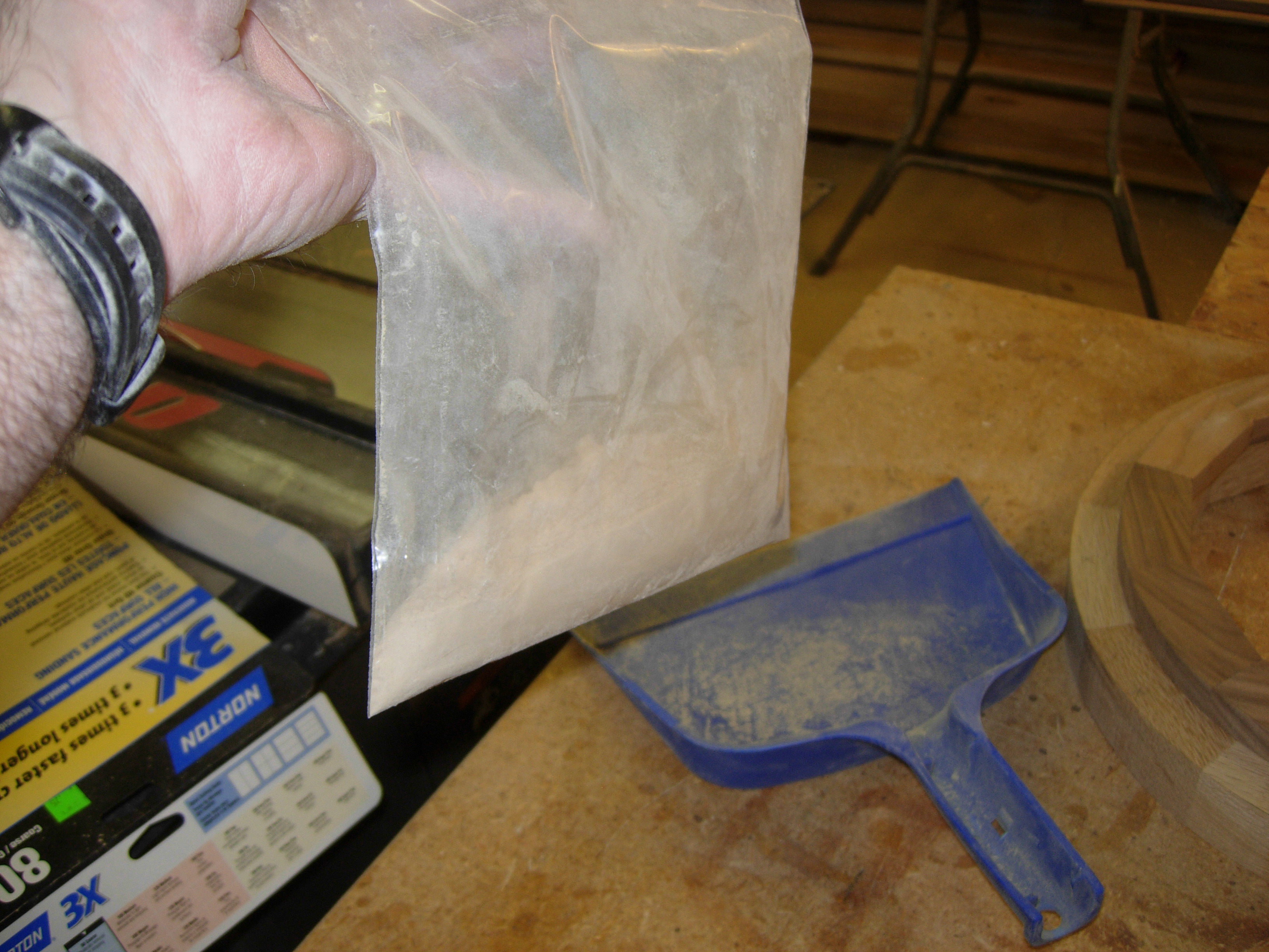 I saved all of the dust in a bag. This stuff is great to use as wood filler, when mixed with the right glue. I will probably need it to fill gaps in the dome once it has been shaped on the lathe.