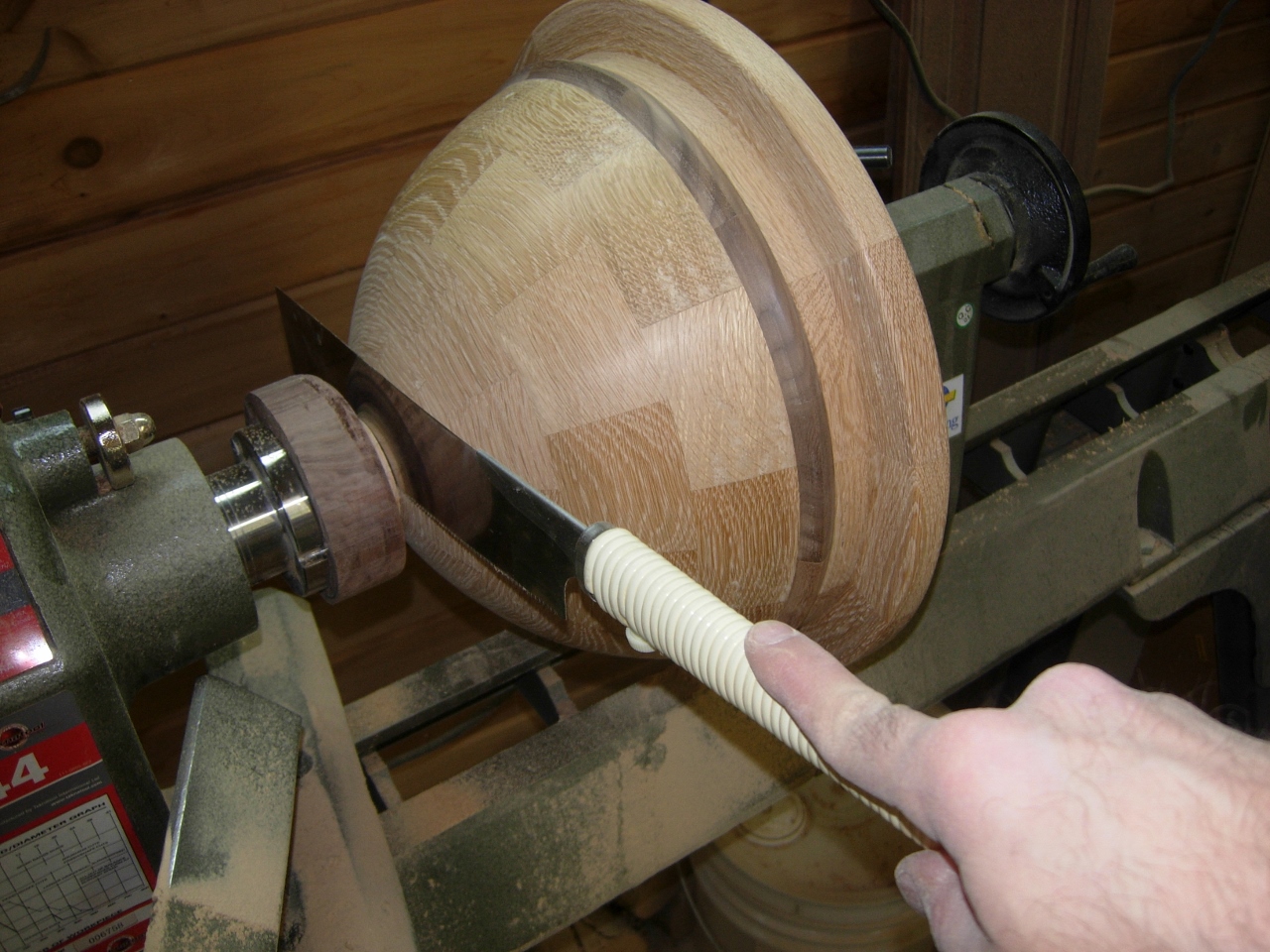 I left the body in the lathe because it had an indexing head that I could lock in place with each joint pointing up. This actually worked a lot better than trying to hold it down on my bench.