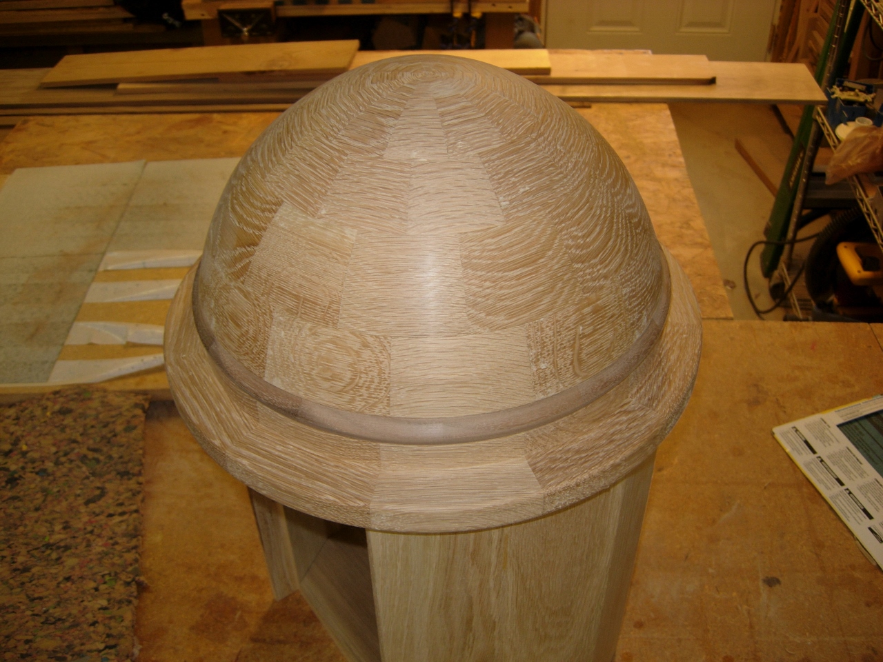 I worked my way through the different sand paper grits, on the orbital sander this time, rolling the sander back and forth to round the top to match the rest of the dome.