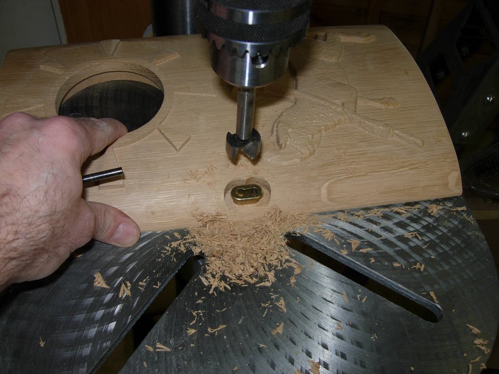 During the dry-fit, I realized that I no longer had a key hole so I located the keyhole and drilled a pocket large enough to mount the escutcheon. Since the key is short, I made sure there was also enough room for a couple of fingers to turn the key.