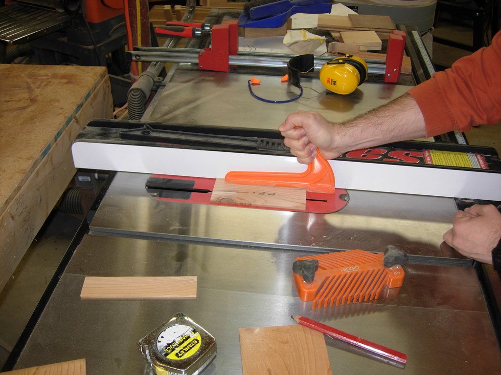 Rob measured and ripped the side pieces on the table saw. No ninja moves when using the table saw. Safety first…