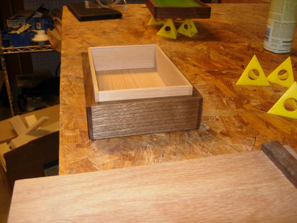 Besides a bit of tear-out in the rabbets, the prototype box came together beautifully. We may experiment with a different joint, or a different method for making the same joint, on the next box, but Rob is very satisfied with the outcome of the prototype.