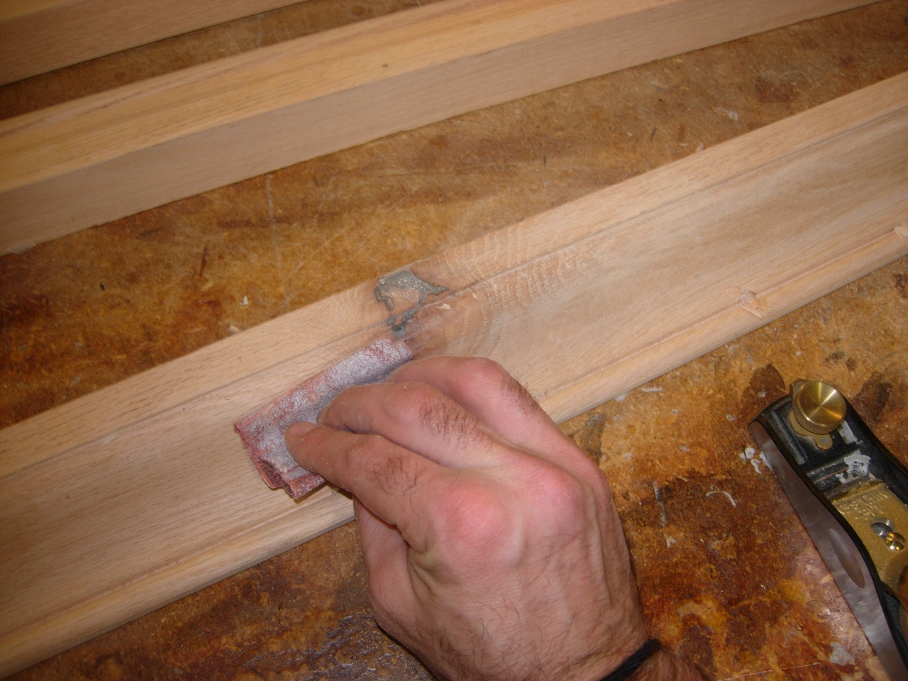 After it cured, over night, I planed down the epoxy on the flat surfaces, and patiently sanded the curved surfaces, by hand working my way down from course grit to fine.