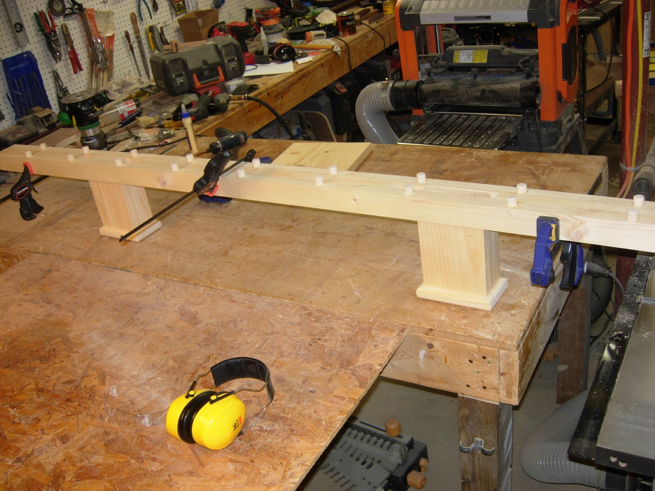 Hopefully tonight I will get a chance to round over the edges and drill the holes in the ends and centers. That will be the last of the construction and I will be down to finishing.
