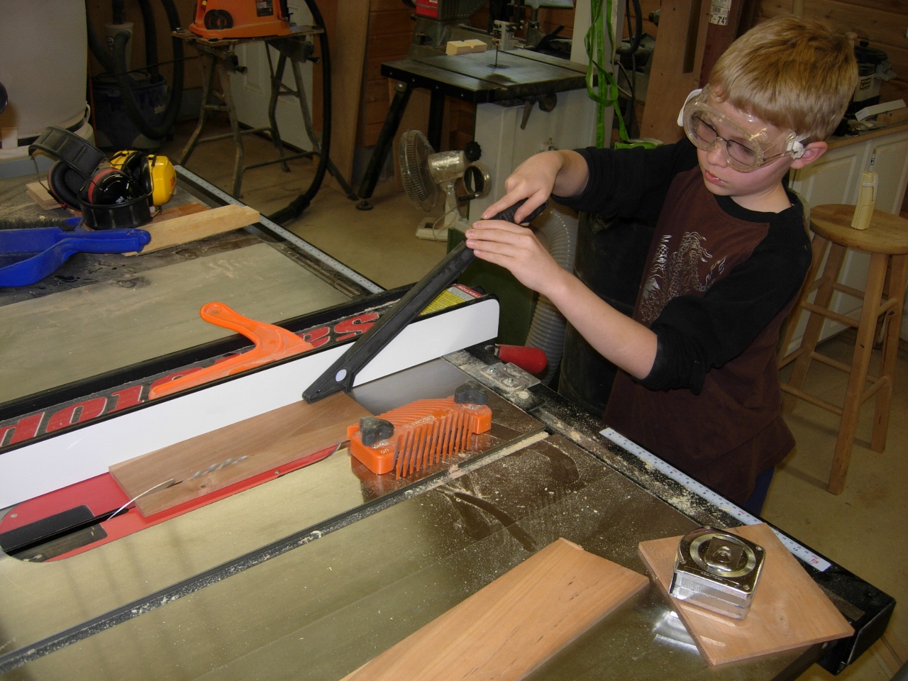 Adam operated the table saw for the first time, standing well back from the blade. I used the miter saw since it is setting right at his eye level.