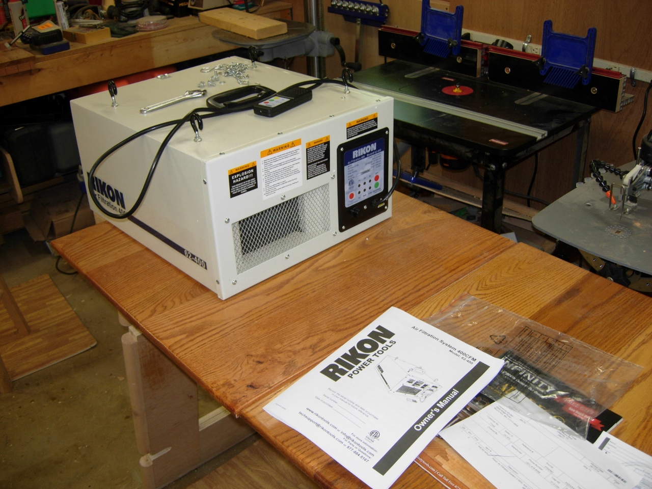 Another new addition, to my shop, is this Rikon 62-400 air filtration system. I have a mini-split heat pump on order, that will be installed in my shop soon. It is large enough to heat/cool my shop and garage. I purchased the air filter to mount in front of the intake of the new heat pump in an effort to cut down on the saw dust clogging the heat pump’s filter. I am not entirely sure where the heat pump will be mounted yet, but the air filter will be in the way, sitting on my bench or floor, so I am going to hang it approximately where I think it will be, then move it later if I need to.