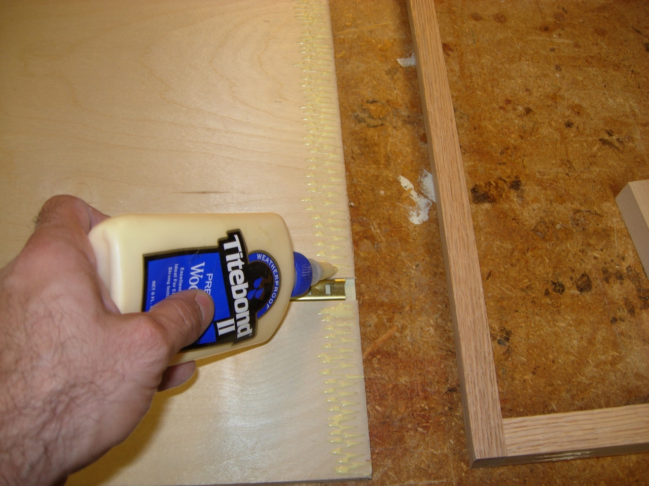 To attach the top and bottom panels, I ran glue around the top of the bottom frame piece and nailed the bottom in place.
