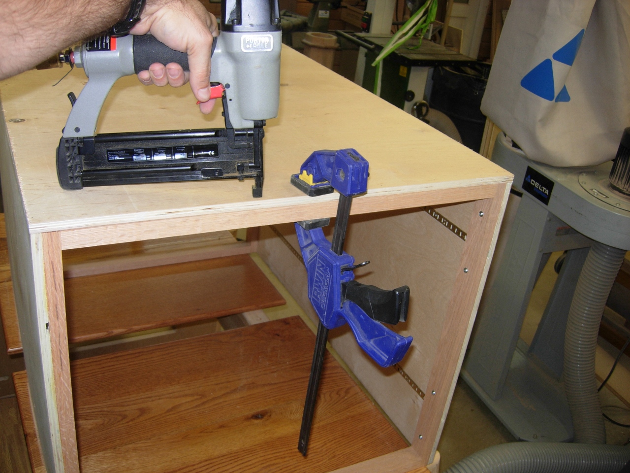 I used my 18 gauge brad nailer to attach the back panel using 1-1/4″ brads.