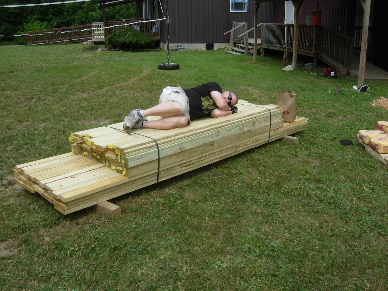 I explained to the teens that the wood would warp in the sun if un-bundled, but our youth minister decided to cover the pile and hold the boards down.