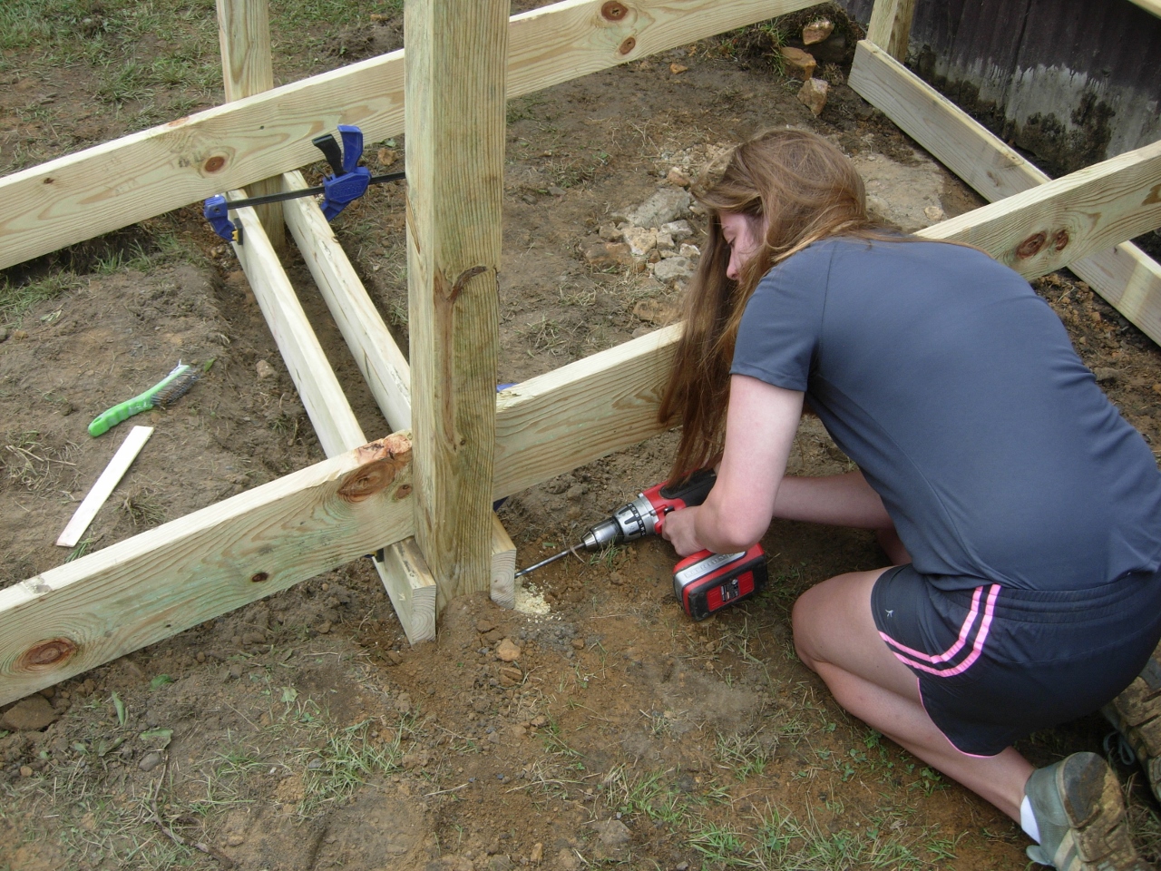 Day two started with us tying all the posts together with a couple of 2″x8″ joists.