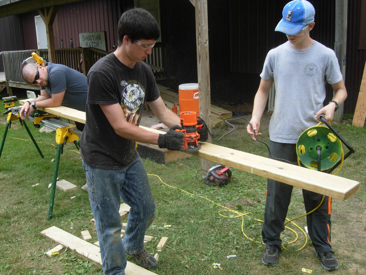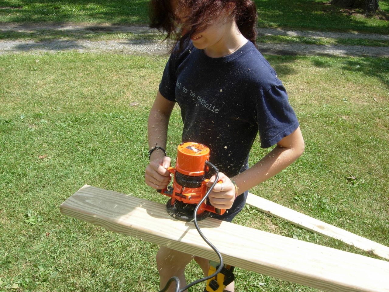 The kids got a lot more experience with the router the second day. I think they were a little scared of it the day before, but they jumped right in with no fear on the second set of rails.