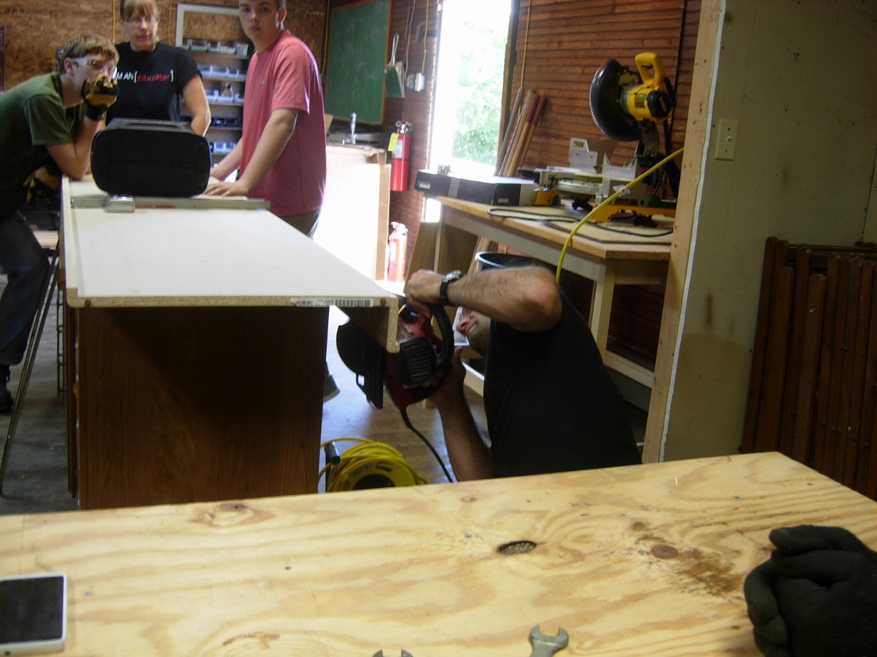 Day four, we split my group. The guys watched as I spent most of my day working on modifying a counter top for another group.