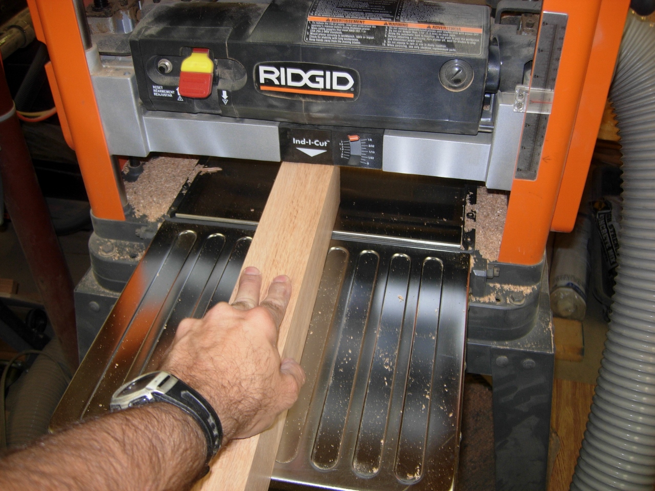 I planed all the boards down to 3/4″ thick, then organized them into stacks by size, and ran them through the planer on edge. I have found this to be a rather efficient way to joint my boards, as long as I leave extra on the ends. The planer will grab the boards and dig in a little extra, sometimes.