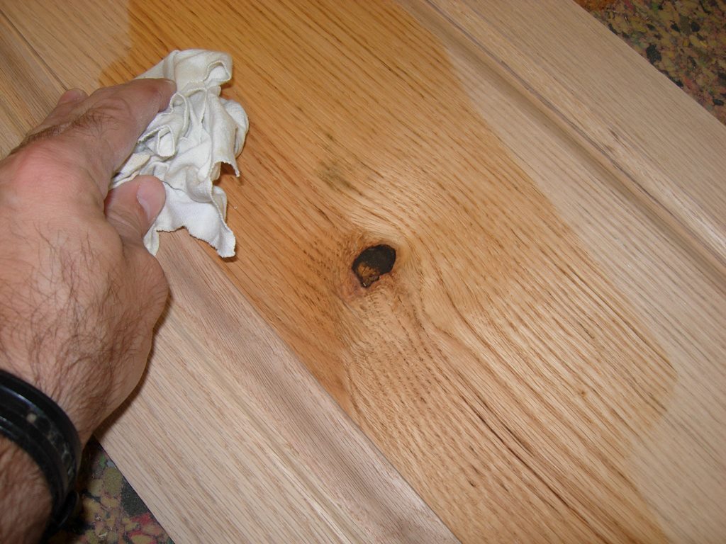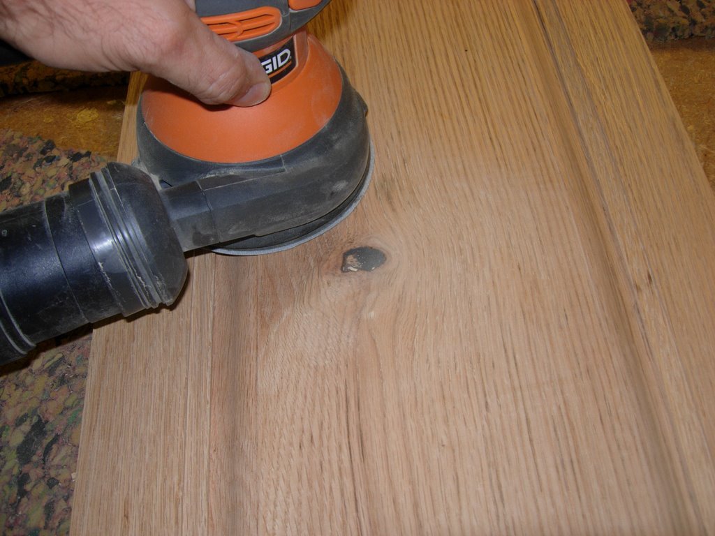 I sanded down the surface of the epoxy with my orbital finish sander, then cleaned up the dust with some Naphtha. Now the surface is smooth and the knot hole completely stabilized. Since the hole is now solid, it won’t collect any dust or snag any clothes either.