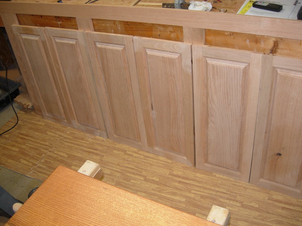 Well, it is nearly midnight again. Everything is just about ready for finishing, just a few finishing touches with the sand paper. The only thing left is a shelf for each of the cabinets. I had nearly forgotten about them. I will be making them out of 3/4″ plywood with a nice piece of oak edge banding. It shouldn’t take long so maybe I will be spraying on the finish by this weekend.
